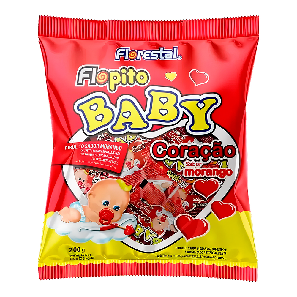 Pirulito Baby Flopito Coração Florestal Morango 200g